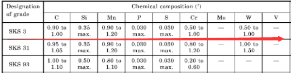 SKS3屬于日標高硬度空冷淬硬高鉻工具鋼,執行標準:JIS G4404-2006